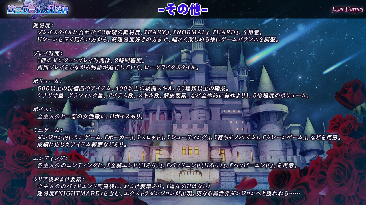 ロエロール城で様々なHシーンが発生! 女性主人公はボイスあり!