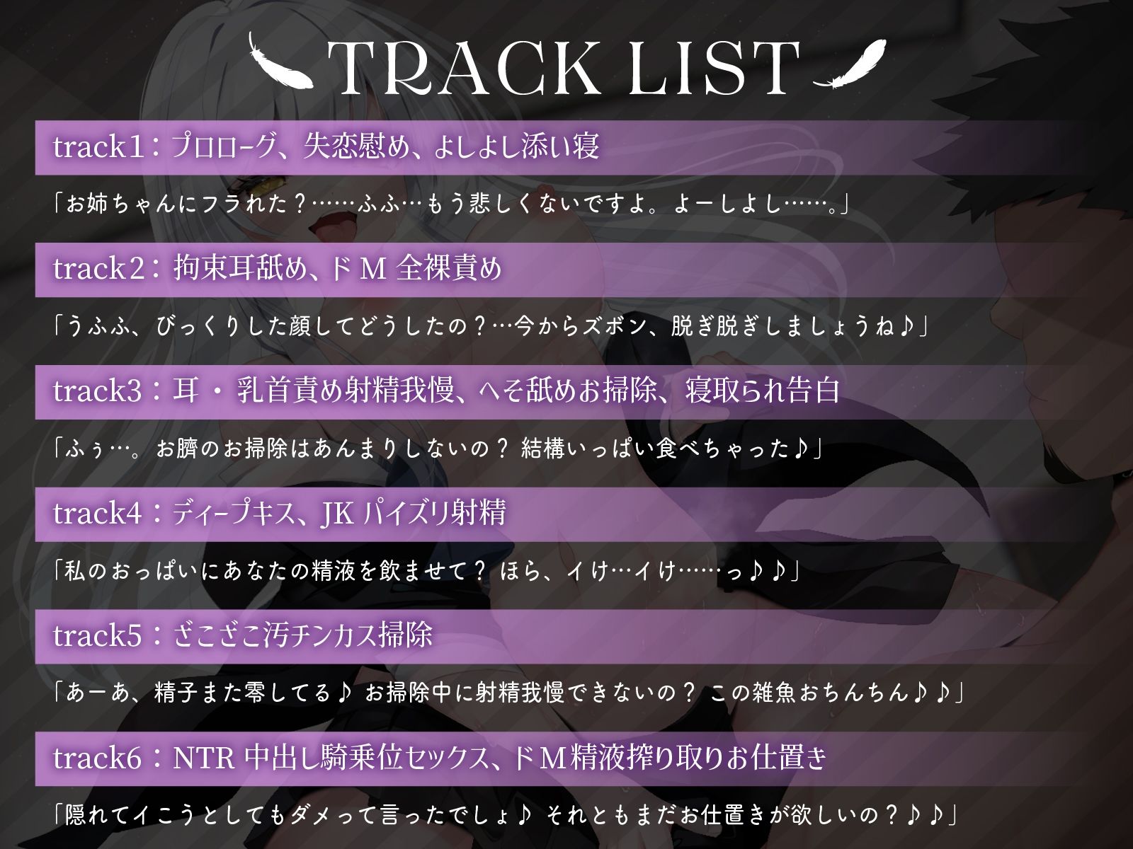 ジャンル: 寝取り・寝取られ・NTR、監禁、ヤンデレ、言葉責め、男性向け、成人向け、バイノーラル、耳舐め、セーラー服、ロングヘア、全肯定、ダウナー