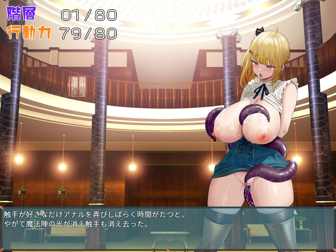 ワンボタンorワンクリックで一段階ダンジョンを奥へ進み、冒険に有利になるものから不利になるもの、エッチなものまで色々なイベントを経験しながら最奥の階層へと向かって行きます。