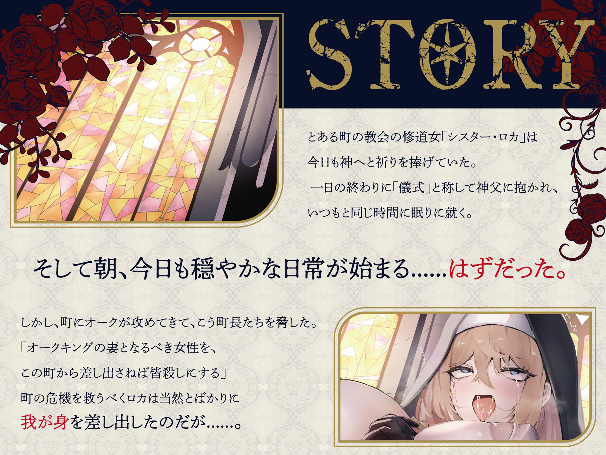 絶倫オークの本気交尾でメス堕ちする爆乳シスター〜極大デカマラの快楽に溺れて〜【オホ声/約1時間/ファンタジー】 あらすじ