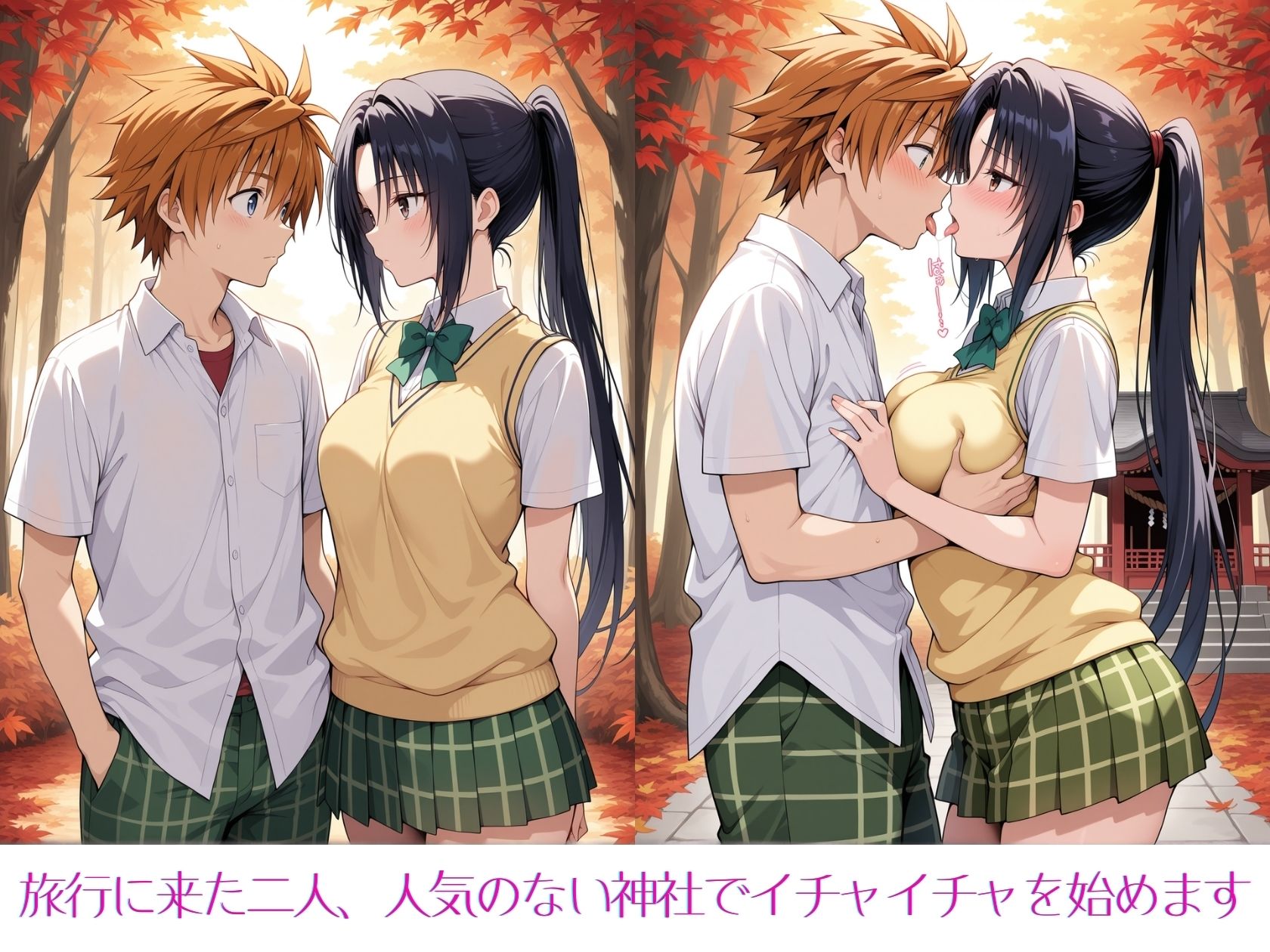 こっそりと旅行に来たリトと九条先輩が各スポットでイチャイチャします。