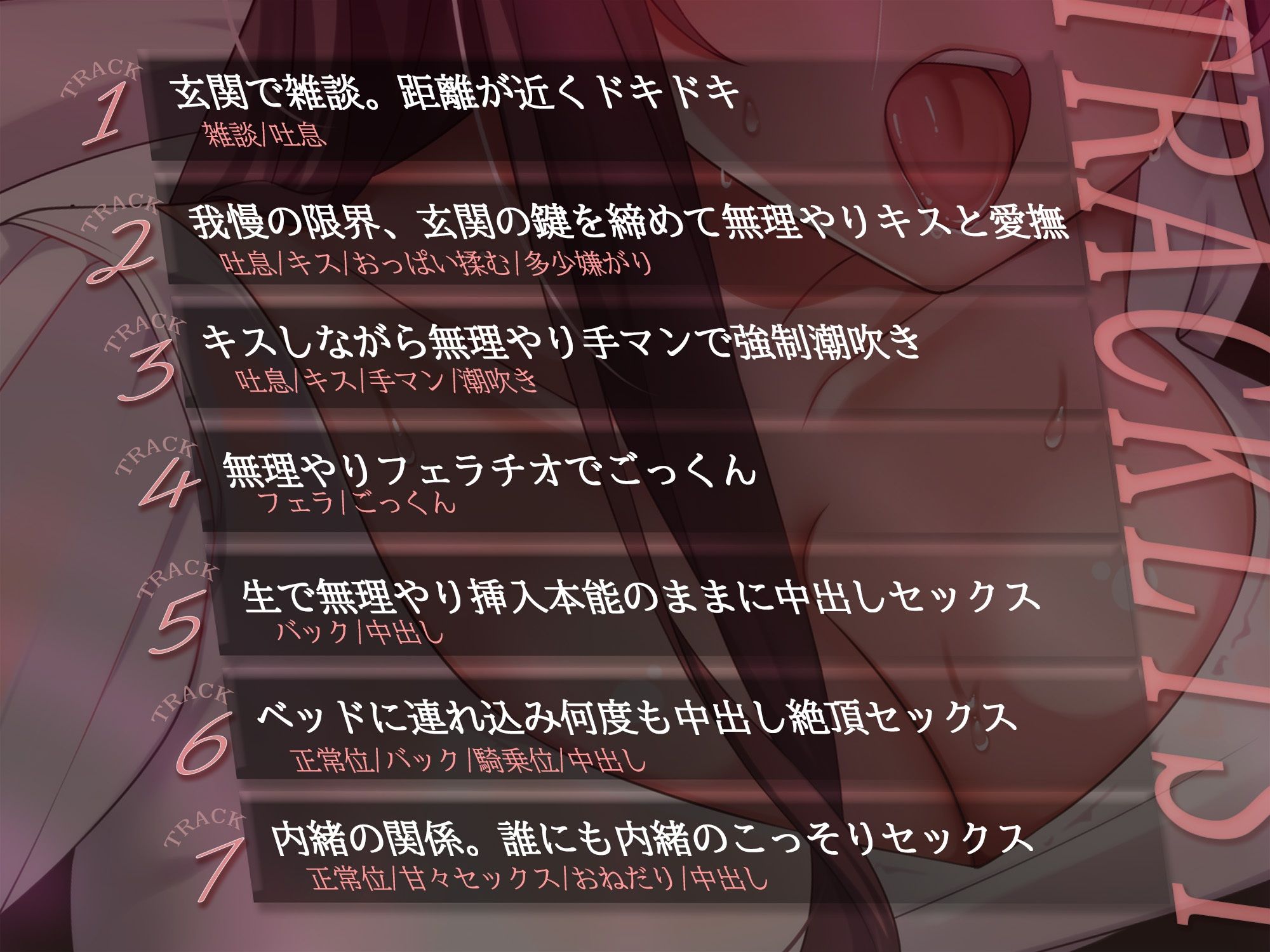 トラック2『我慢の限界、玄関の鍵を締めて無理やりキスと愛撫』【06:33】